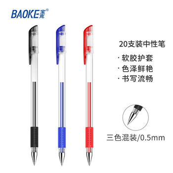 宝克(BAOKE)20PC880E 0.5mm混色中性笔 办公水笔签字笔 20支/卡(15黑4蓝1红)