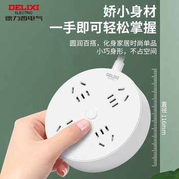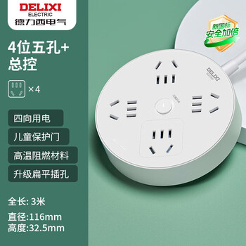 德力西(DELIXI)插座/插线板/插排/排插/拖线板/接线板 圆形插座4位总控 全长3米总控开关