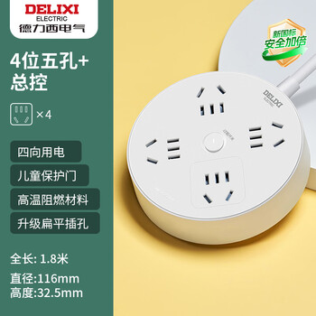 德力西(DELIXI)插座/插线板/插排/排插/拖线板/接线板 圆形插座4位总控全长 1.8米总控开关