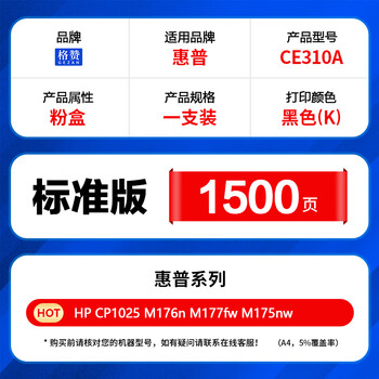 格赞CE310A粉盒黑色适用惠普CP1025硒鼓M176n M177fw碳粉M175nw佳能LBP7010C LBP7018C CF350A打印机CRG329墨盒