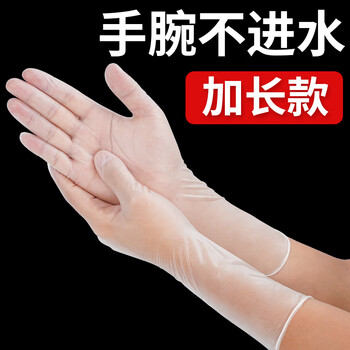 英科医疗一次性手套PVC100只中码12英寸加长食品级餐饮厨房防水家务清洁