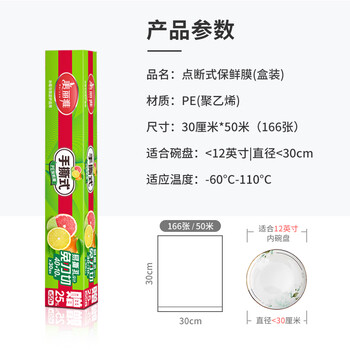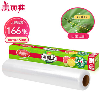 美丽雅食品用保鲜膜大号 点断易撕免刀切30cm*50米 耐高温可微波