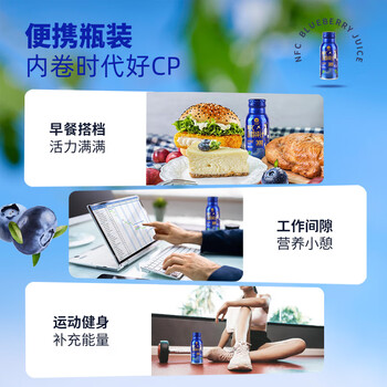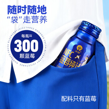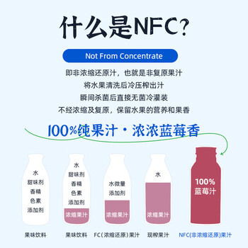 沃田NFC蓝莓汁100%纯果汁儿童花青素饮料蓝莓果汁节日礼品 200ml*10瓶
