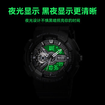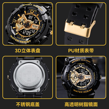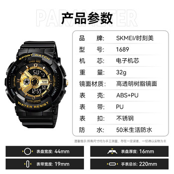 时刻美(skmei)电子表学生初高中青少年儿童防水闹钟多功能手表男生1689黑金色