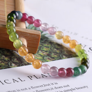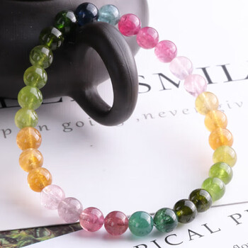 石玥珠宝收藏级6-7mm彩虹碧玺手链转运珠天然水晶手串男女士款 水晶玛瑙