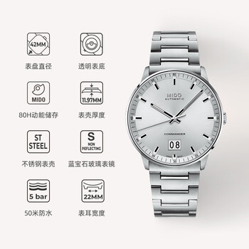 美度(MIDO)瑞士手表 指挥官 纪念款 商务休闲 机械钢带男表