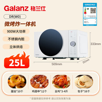 格兰仕(Galanz)宇宙厨房系列微波炉25L900W一级能效变频不锈钢内胆空气炸烤箱一体机DR(W0)