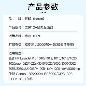 得印q2612a 12a硒鼓2支装 适用惠普1020硒鼓hp m1005 1020plus 1010 1018佳能lbp2900 crg303打印机墨盒