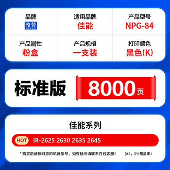 格赞NPG-84粉盒适用佳能2625粉盒ir2625 2630 2635 2645 Canon ImageRUNNER墨粉npg84打印机硒鼓墨粉盒