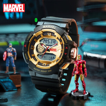 漫威(Marvel)钢铁侠系列运动电子表多功能防水手表初高中学生儿童生日礼物开学