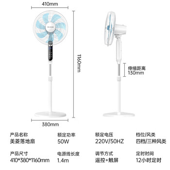 美菱(MeiLing)电风扇/落地扇 七叶大风量家用摇头风扇 可拆卸轻音遥控定时电扇MFS-40R