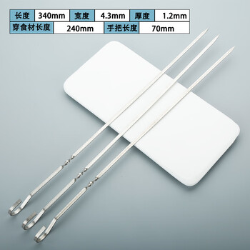 典克 不锈钢烧烤签 勾型烧烤针 勾型扁烤针 羊肉串烤肉签子 烧烤配件工具30支