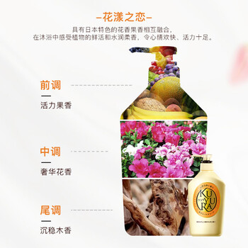 可悠然(KUYURA)沐浴露香氛美肌沐浴乳 男女通用原装进口(花漾之恋550ml)