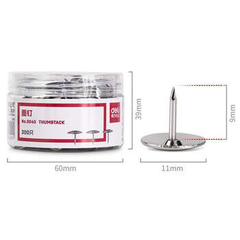 得力0040图钉(300枚/筒)5筒按钉镀镍大头钉子摁钉圆头小图钉软木板装饰钉
