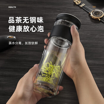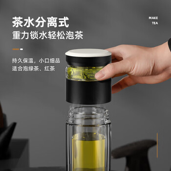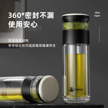 特美刻(TOMIC)茶水分离泡茶杯抗菌双层玻璃杯男杯子钛茶隔茶杯男士团购定制