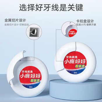 小鹿妈妈牙线卷清新口气 便携护龈 50m*2 牙签线(可用200次)