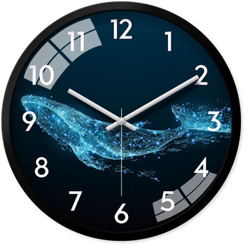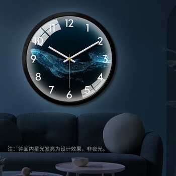 摩门(Momen)30cm电波钟 客厅卧室夜光电波钟表游鲸发亮自动对时挂钟 HJ0084