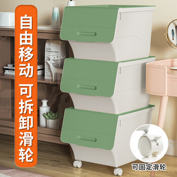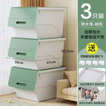 JEKO&JEKO前开翻盖玩具收纳箱儿童衣服收纳盒整理箱零食储物箱34L3只装绿色
