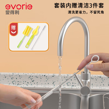爱得利(evorie)婴儿奶瓶套装 6个月以上宝宝宽口径奶瓶套装一瓶三用240ml 蓝