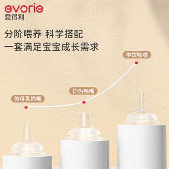 爱得利(evorie)婴儿带吸管奶瓶套装 一瓶三用 6个月以上宝宝防漏PPSU奶瓶套装