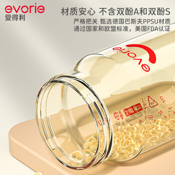 爱得利(evorie)婴儿带吸管奶瓶套装 一瓶三用 6个月以上宝宝防漏PPSU奶瓶套装