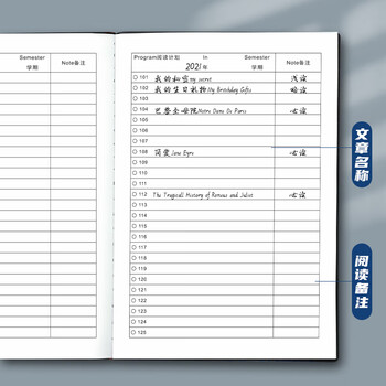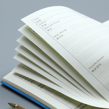 嘉然恒 英语阅读记录本英语课外读物观后感读书专用笔记高初中小学生好词好句摘抄本子加厚A5蓝色