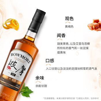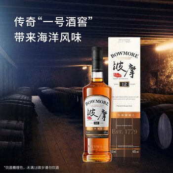 波摩(Bowmore)12年单一麦芽700ml 礼盒雪莉桶 苏格兰 艾雷岛单一麦芽 威士忌