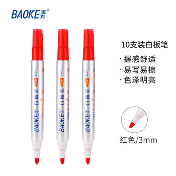 宝克(BAOKE)MP320 办公会议教学白板笔可擦易擦 红色 10支/盒