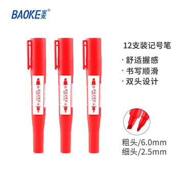 宝克(BAOKE)MP210 油性粗细双头记号笔物流笔 红色 12支/盒