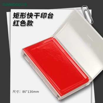 三木(SUNWOOD)136*86mm方形透明外壳财务会计办公专用快干印台印泥 红色 6282