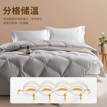 源生活防钻绒 100%白鸭毛羽毛被子被芯 四季双人被 8斤 220*240cm 灰色