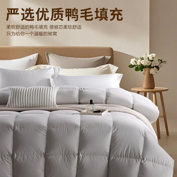 源生活防钻绒 100%白鸭毛羽毛被子被芯 四季单人被 5斤 150*200cm 灰