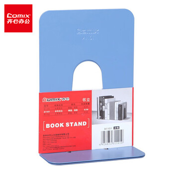 齐心7英寸金属铁桌面书立置物架书收纳桌上书架 办公书靠2片 办公学习用品 蓝 A1101