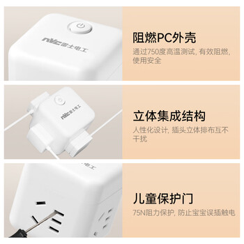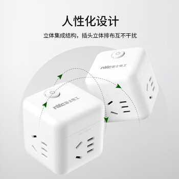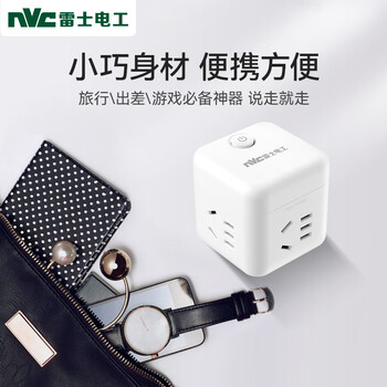 NVC雷士电工 无线小魔方插座插线板插排排插 迷你旅行转换器多功能一转四 EM3110