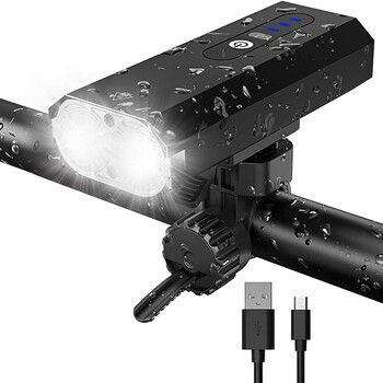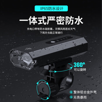 BIKEBROS自行车灯前灯夜骑行强光手电筒USB充电防雨山地车户外骑行装备配件 黑色800流明