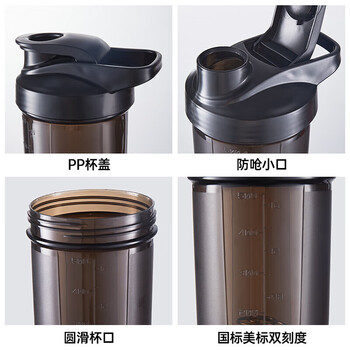 贝瑟斯摇摇杯运动健身水杯蛋白粉搅拌杯奶昔杯子代餐杯瑶瑶杯500ML黑色