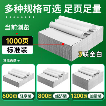 新绿天章三联整张不撕边 针式电脑打印纸 (241-3全白 1000页)