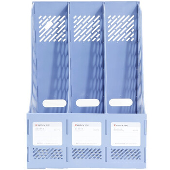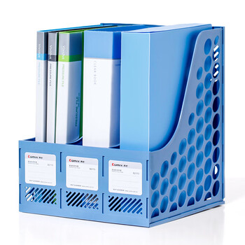 齐心(COMIX) 三联桌面文件框 三栏带标签稳固文件栏/文件筐/资料框 蓝色B2173