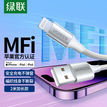 绿联【MFi认证不弹窗】适用苹果充电线快充数据线USB to Lightning iPhone14/13/12手机ipad平板2m