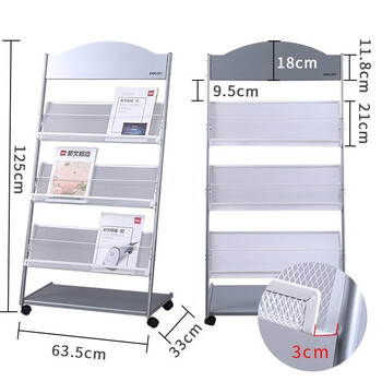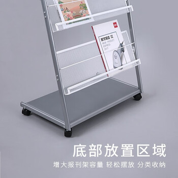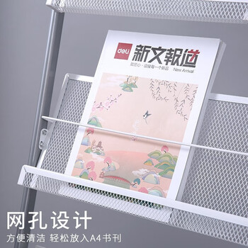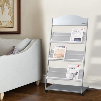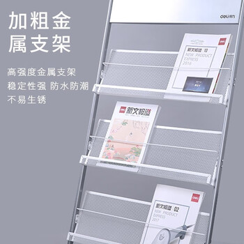 得力三层金属报刊杂志架书刊架 宣传册展示架落地资料架 办公室置物架 高1.27米9308