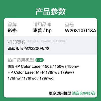 彩格178nw硒鼓适用惠普118a硒鼓W2080a粉盒hp 179fnw墨盒M150nw 150a彩色打印机 带芯片蓝色墨粉盒易加粉