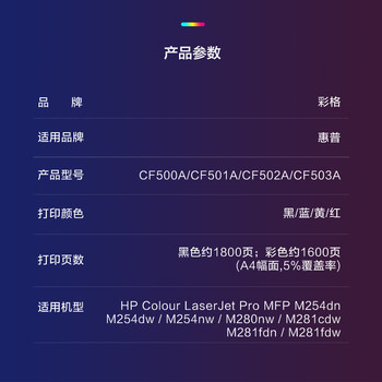 彩格适用惠普m281fdw碳粉hp202A墨粉hp m254dw M254nw M281fdn硒鼓M280nw m254dn 281cdw cf500a打印机墨粉盒