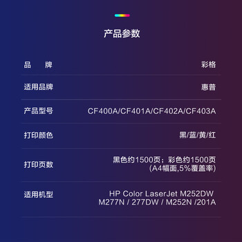 彩格cf400a碳粉 适用惠普HP CF500A CF510A CF410A CF400A 打印机硒鼓墨粉 红色碳粉