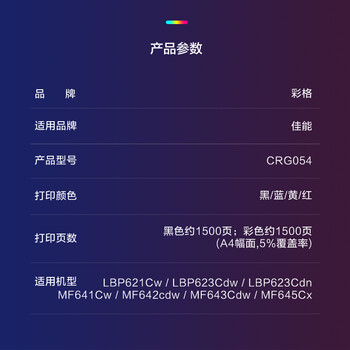 彩格适用佳能CRG-054碳粉红色 LBP621Cw LBP623Cdn/Cdw墨粉 ic MF641Cw MF642cdw MF643Cdw MF645Cx碳粉