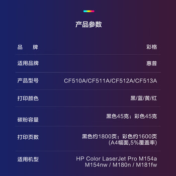 彩格适用惠普204a碳粉m154a墨粉m180n m181fw m154nw cf510a打印机硒鼓墨盒粉盒hp Color LaserJet Pro