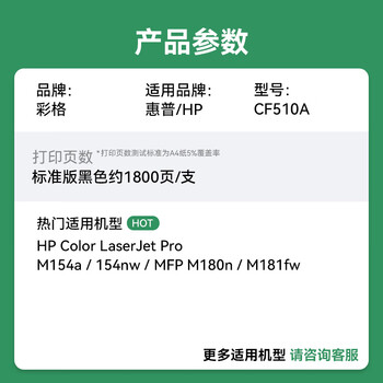 彩格适用惠普204a硒鼓惠普m154a硒鼓hp Color LaserJet Pro m180n m181fw m154nw cf510a打印机硒鼓墨盒粉盒