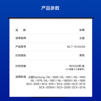 彩格MLT-D1043S碳粉6支适用三星ML1666 1670 1861 1860 1676 1660 1661 1865打印机SCX-3201 3206 3208墨粉盒碳粉