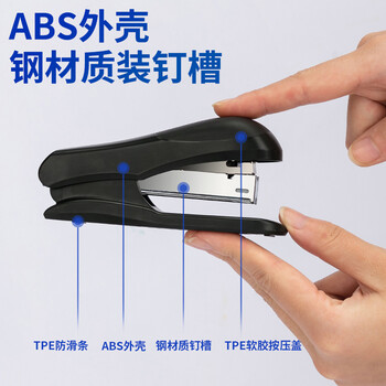 得力(deli)订书机0305黑色12#号订书器可装订20页办公用品省力中型订厚书装订机