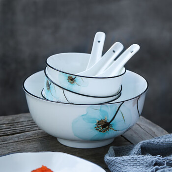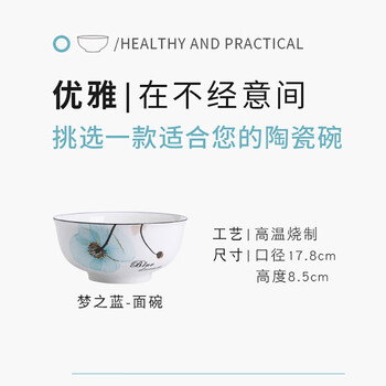 苏氏陶瓷汤碗 梦之兰日式家用陶瓷面碗7英寸2只装中餐具