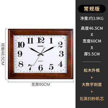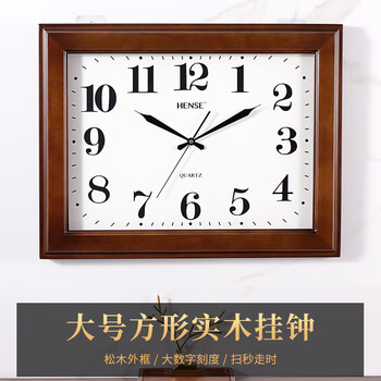 汉时(Hense)中式实木挂钟长方形客厅挂墙时钟经典挂表石英钟表HW30棕色60cm